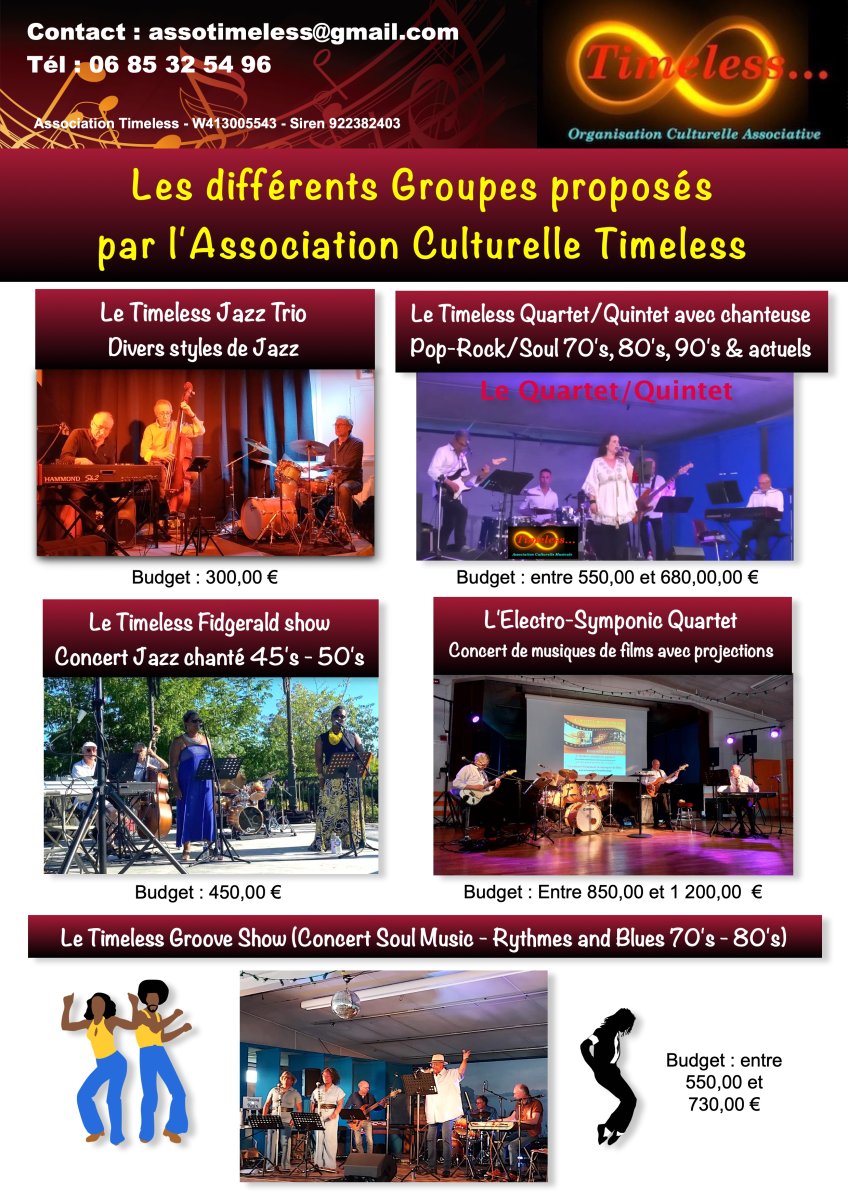 Différents groupes musicaux peuvent être proposés en fonction de la demande :